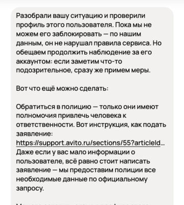 Удивляет реакция поддержки Авито на предоставленную информацию о деятельности гражданина Мазманяна. Ответ: мол, нарушений правил сайта не обнаружено, санкции применять не будем.